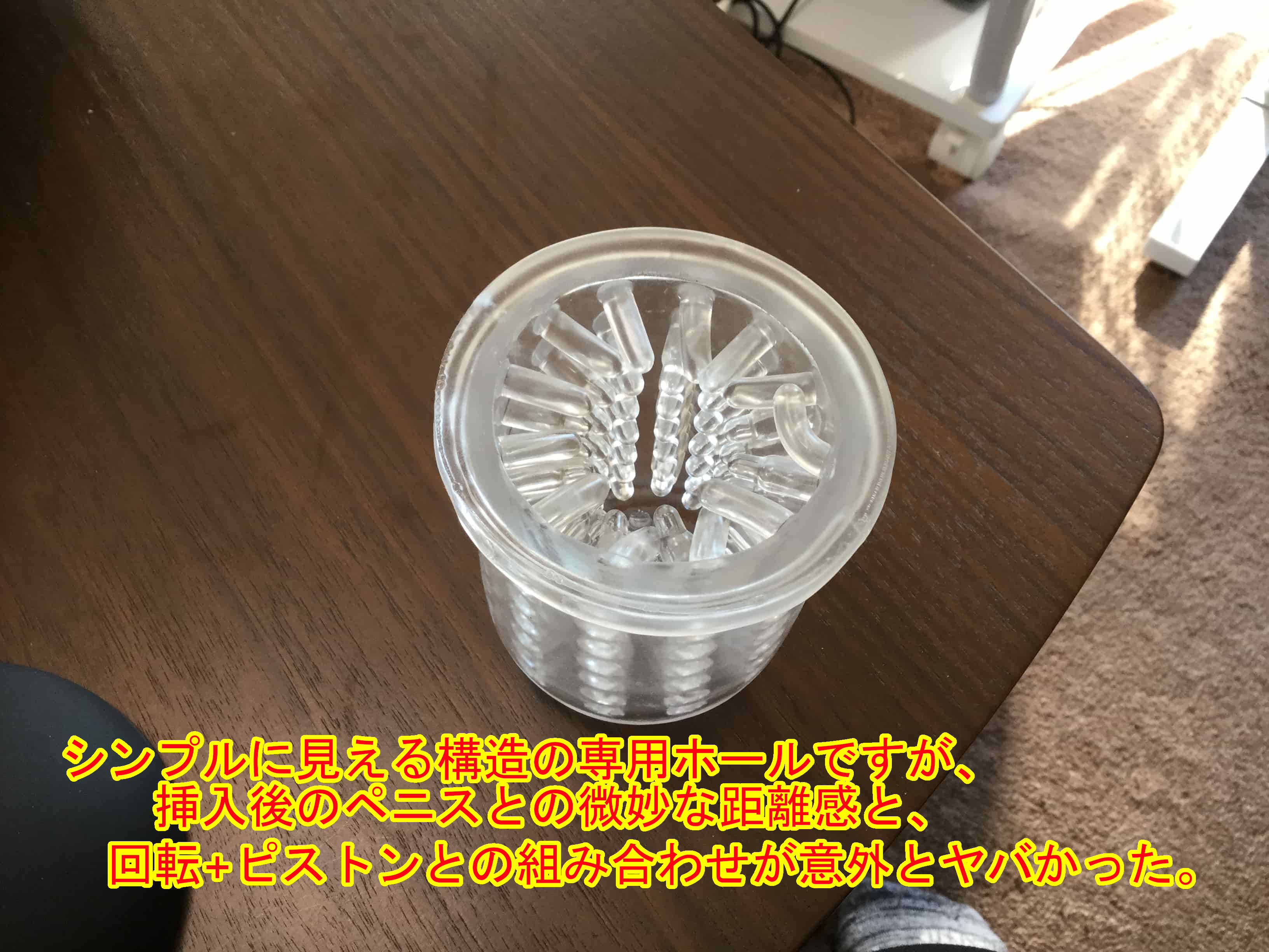 竿の表面に対して突起の先端が非常にいい距離感で接触するのでこのような感じを得られたのだと後で気づきましたが、こんな単純なホールでここまで気持ちがいいとは予想していなかったので、非常に“当たり”の電動オナホールです。